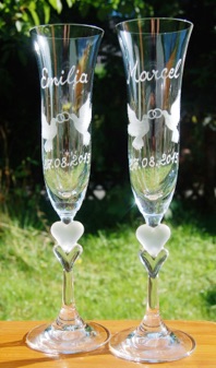 Die Glasschleiferei Weber fertigt seit über 50 Jahren noch nach altem Kunsthandwerk individuelle Glasgravuren zu allen Anlässen und Feierlichkeiten an. Besonders beliebt sind Hochzeitsgläser für das Brautpaar mit eingravierten Namen und Hochzeitsdatum. Nicht nur bei der Hochzeit lässt sich hiermit anstoßen, auch an jedem Hochzeitstag ist dieses eine schöne Erinnerung an den großen Tag.